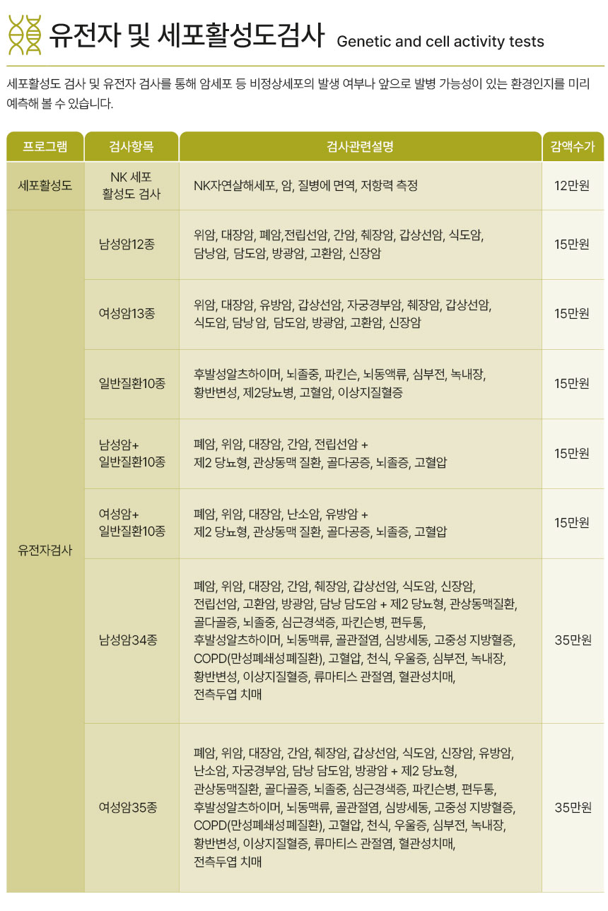 성별, 연령대별로 가장 중요한 질환들에 대한 필수적인 항목우로 구성된 검사 프로그램입니다. 건강 검진을 받고자 하는 분들은 최소한 기본 검진에 포함된 항목들은 빠짐없이 받기를 권유합니다.