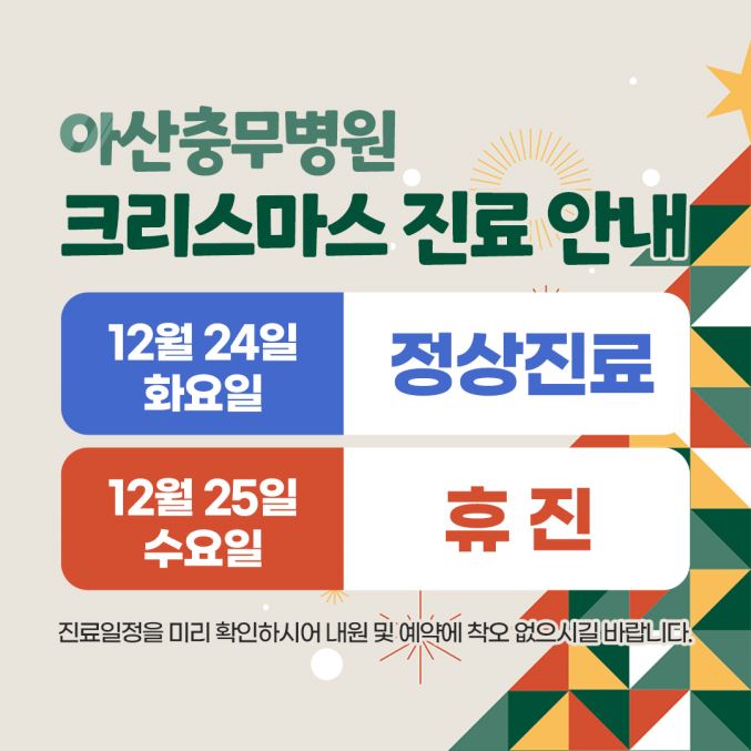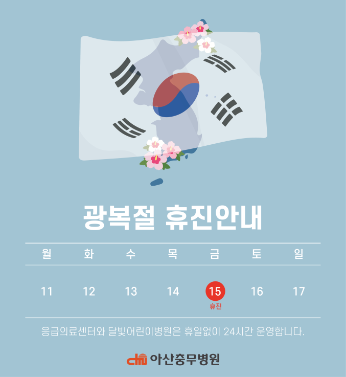 안녕하세요, 아산충무병원에서 알려드립니다.