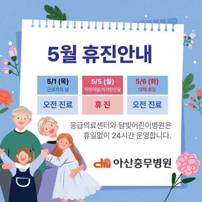 5월 1일(월) 및 5월 6일(화)은 오전 진료만합니다.