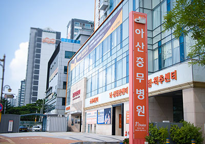 2015년 3월 279병상 44병실 16개 진료과목으로 개원한 아산 유일의 종합병원인 아산충무병원은 아산시민분들의 질병예방과 치료에 부족함이 없도록 더욱더 과감한 투자로 2020년 3월 본관, 신관 그랜드 오픈과 함께 580병상으로 증설하였으며, 20병상의 중환자실, 10개의 수술실, 15개의 격리병상 및 음압 수술실과 중증응급진료센터를 운영하고 있습니다. 특히 심 뇌혈관 질환의 골든타임과 24시간 신속한 응급수술을 위하여 3대의 혈관 조영장비를 보유하고 있으며, 베테랑의 심 뇌혈관 전문의들과 완벽한 근무 시스템이 구축되어 있습니다. 성형외과, 피부과, 이비인후과, 안과, 비뇨의학과를 포함한 25개과 65여 명의 대학병원 출신의 교수진 및 전문의로 구성된 의료진과 300여 명의 간호인력, 300여 명의 진료지원 및 행정 직원들이 “환자를 가족처럼” 이라는 원훈 아래 최선을 다해 헌신하고 봉사하고 있습니다.