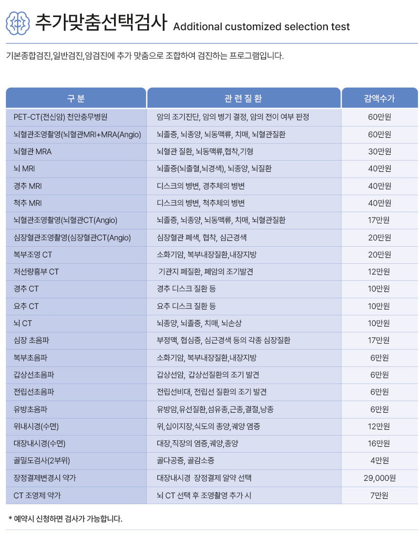 원하시는 항목을 검진 프로그램에 추가하여 검사 받으실 수 있습니다.