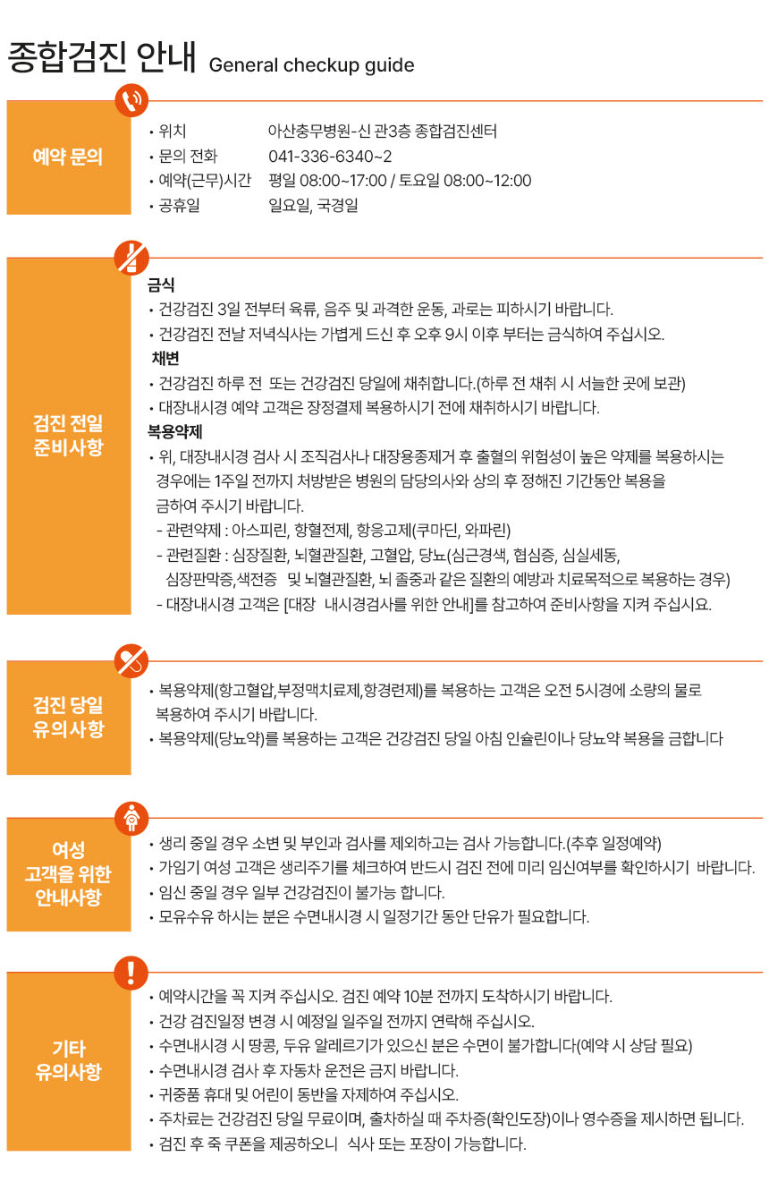 수면(위,대장내시경) - 수면 내시경검사가 예약된 고객은 검사 안내문을 참고하여 자가운전을 금합니다.