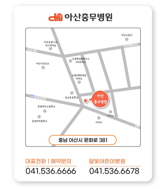 안녕하세요! 영서의료재단 아산충무병원입니다.