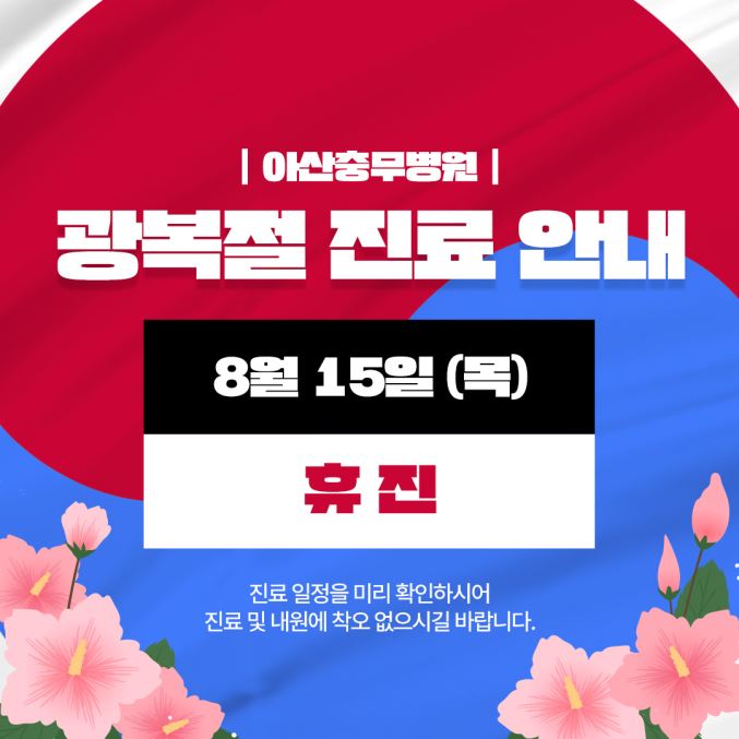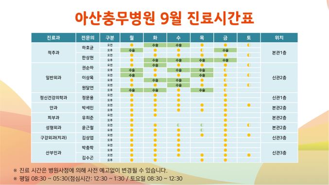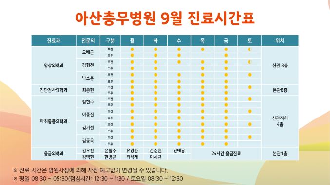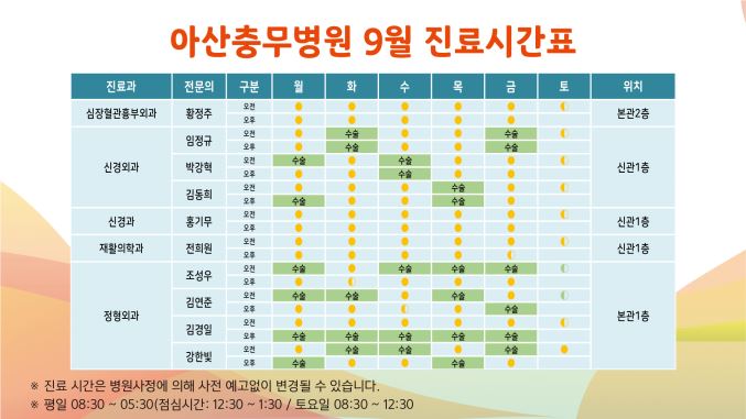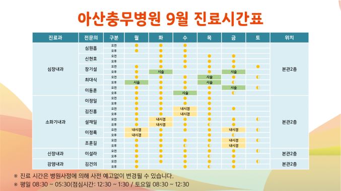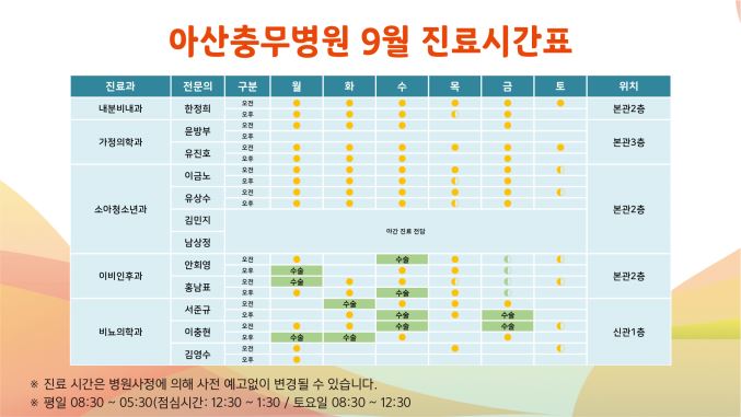 안녕하세요, 아산충무병원에서 알려드립니다.