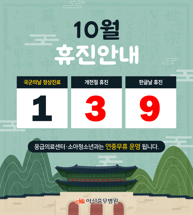 참고하시어 진료 예약 및 내원 시 착오 없으시길 바랍니다.