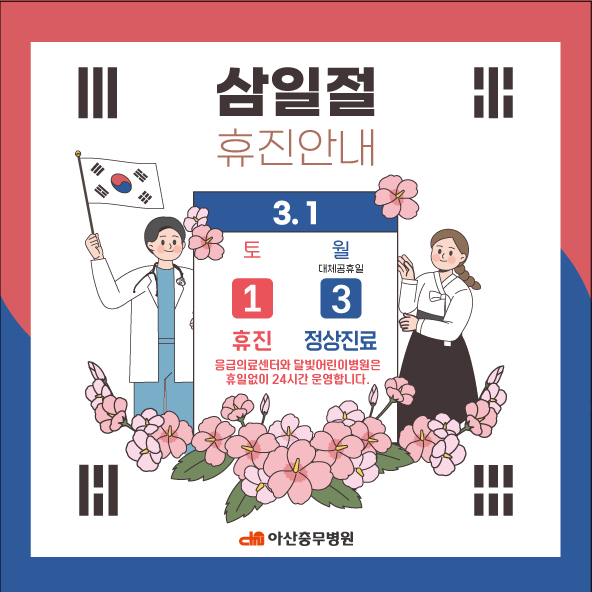 3월 1일(토)은 삼일절로 인하여 '휴진' 입니다.